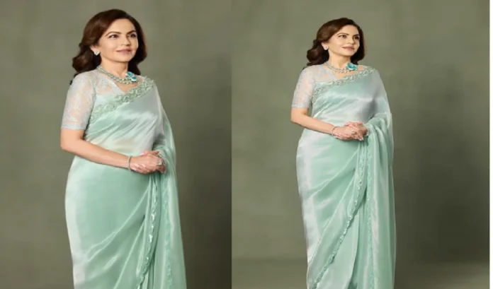 बॉलीवुड के सुपरस्टार शाहरुख खान के बेटे आर्यन खान बहुत जल्द ही नेटफ्लिक्स सीरीज से डायरेक्टर के तौर पर अपना डेब्यू करने जा रहे हैं। जिसको लेकर खान ने ग्रांड सेलिब्रेशन का आयोजन एनएमएसीसी में हुआ था। यहां पर तमाम बॉलीवुड के तमाम सितारें पहुंचे थे। इस सेलिब्रेशन में नीता अंबानी अपनी फैमिली के साथ नजर आईं। यहां पर बहु श्लोका औ राधिका के साथ मुकेश अंबानी और आकाश अंबानी भी इस सेलिब्रेशन के लिए इनवाइटेड थे। हालांकि, नीता अंबानी ने अपने लुक से सबके होश उड़ा दिए। नीता अंबानी का साड़ी लुक सब पर भारी पड़ गया।