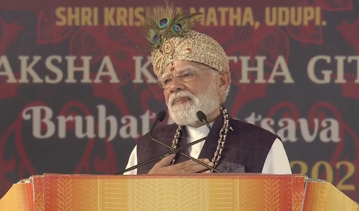 मोदी ने कहा कि अभी 3 दिन पहले ही मैं गीता की धरती कुरुक्षेत्र में था। अब आज भगवान श्री कृष्ण के आशीर्वाद और जगद्गुरू श्री माधवाचार्य जी के यश की इस भूमि पर आना मेरे लिए परम संतोष का अवसर है। उन्होंने कहा कि आज के इस अवसर पर जब 1 लाख लोगों ने एक साथ भगवदगीता के श्लोक पढ़ें, तो पूरे विश्व के लोगों ने भारत की सहस्त्र वर्षों की दिव्यता का साक्षात दर्शन भी किया है। कर्नाटक की इस भूमि पर यहां के स्नेहीजनों के बीच आना मेरे लिए सदा ही एक अलग अनुभूति होती है। और उडुपी की धरती पर आना तो हमेशा ही अद्भुत होता है।