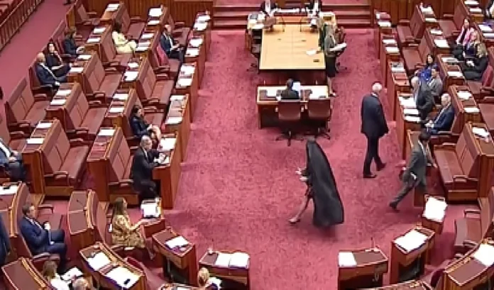 ऑस्ट्रेलिया की कट्टर दक्षिणपंथी सेनेटर पॉलिन हसन ने संसद के ऊपरी सदन में ऐसा माहौल बना दिया जिसकी किसी ने कल्पना भी नहीं की थी। वो अचानक काले बुर्के में लिपटी हुई सीनेट में दाखिल हुई और जैसे ही लोग समझने लगे कि अंदर कौन आया है। पूरा सदन शोर और गुस्से से भर गया। हसन लंबे वक्त से सार्वजनिक जगहों पर पूरे चेहरे को ढकने वाले कपड़ों खासकर बुर्के पर पाबंदी की मांग कर रही है। लेकिन जब उन्हें इस मुद्दे पर बिल पेश करने की अनुमति नहीं मिली तो उन्होंने विरोध का यह तरीका अपनाया। उनके आते ही सदन की कारवाई रुक गई।