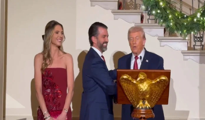 अमेरिकी राष्ट्रपति डोनाल्ड ट्रम्प के बड़े बेटे डोनाल्ड ट्रम्प जूनियर (47) ने बेटिना एंडरसन (39) से सगाई कर ली है। इस बात की घोषणा उन्होंने सोमवार को व्हाइट हाउस में की। दोनों हाल ही में उदयपुर में बिजनेसमैन राजू मंटेना की बेटी नेत्रा और वम्सी गदिराजु की शादी में आए थे। ट्रम्प जूनियर और बेटिना को पहली बार अगस्त 2024 में साथ देखा गया था। इससे पहले ट्रम्प जूनियर की शादी नवंबर 2005 में वनेसा से हुई थी। 2018 में अलग हो गए थे। उनके पांच बच्चे हैं। ट्रम्प जूनियर ने फॉक्स न्यूज की पूर्व एंकर किम्बर्ली गिलफॉयल से 2020 में सगाई की थी, लेकिन कभी अलग होने की घोषणा नहीं की। दिसंबर 2024 में पीपुल मैगजीन ने बताया कि ट्रम्प जूनियर और बेटिना पिछले छह महीने से साथ हैं।