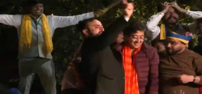 दिल्ली विधानसभा चुनाव नतीजों में आम आदमी पार्टी की प्रमुख नेता आतिशी ने कालकाजी विधानसभा सीट से अपनी जीत दर्ज कर ली है। इस जीत से पार्टी को भाजपा बहुमत वाली विधानसभा में अपनी आवाज प्रभावी ढंग से उठाने का मौका मिलेगा। आतिशी ने भाजपा के रमेश बिधूड़ी को 3500 से अधिक मतों से हराया। जीत के बाद आतिशी ने अपने कार्यकर्ताओं के साथ हरियाणवी गाने ‘बाप तो बाप रहेगा’ पर जमकर डांस किया।