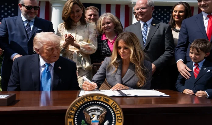 अमेरिका में पॉर्न कंटेंट को लेकर एक बेहद सख्त कानून बना है। अमेरिकी राष्ट्रपति डोनाल्ड ट्रम्प के साथ उनकी पत्नी मेलानिया भी मौजूद थीं। जब उन्होंने टेक इट डाउन एक्ट पर हस्ताक्षर किए, जो बिना सहमति के अंतरंग छवियों और डीपफेक के प्रसार को अपराध घोषित करेगा। खास बात यह है कि संसद में न होने के बावजूद राष्ट्रपति डोनाल्ड ट्रंप की पत्नी मेलानिया ने भी इस पर हस्ताक्षर किए हैं। कुछ घंटे पहले जब मेलानिया ने इस पर साइन किए तब ट्रंप ने व्हाइट हाउस परिसर में खड़े होकर डॉक्यूमेंट सबको दिखाया। व्हाइट हाउस द्वारा जारी फुटेज में व्हाइट हाउस रोज गार्डन में हस्ताक्षर समारोह दिखाया गया है।