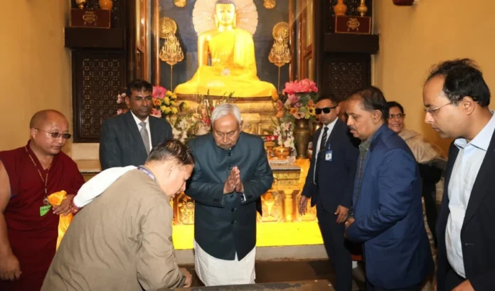 बिहार के मुख्यमंत्री नीतीश कुमार ने बुधवार को बोधगया के महाबोधि मंदिर में पूजा-अर्चना की। बोधगया मंदिर प्रबंधन समिति के सदस्य अरविंद कुमार सिंह ने बताया कि आज बिहार के मुख्यमंत्री नीतीश कुमार, जिन्हें विकास पुरुष के नाम से जाना जाता है, महाबोधि मंदिर पहुंचे। बिहार में नई सरकार बनने के बाद यह उनकी पहली यात्रा है। उन्होंने बिहार में शांति और विकास के लिए प्रार्थना की। मंदिर प्रबंधन समिति के सदस्य ने आगे बताया कि उन्होंने बोधि वृक्ष के समक्ष पूजा में भी भाग लिया। उन्होंने कहा कि भगवान बुद्ध के संदेश को भुलाया नहीं जा सकता क्योंकि विश्व भर में शांति और उनके संदेश की आवश्यकता है।
