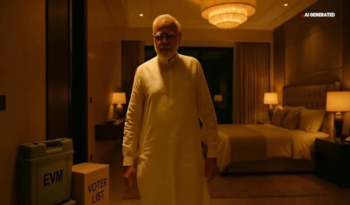 बिना किसी का नाम लिए शेयर किए गए इस वीडियो में हिंदी में एक कैप्शन लिखा है, जिसका अर्थ है: “साहब के सपने में ‘माँ’ आती हैं। दिलचस्प संवाद देखिए।” वीडियो में, प्रधानमंत्री मोदी जैसा दिखने वाला एक किरदार सोने की तैयारी करते हुए कहता हुआ दिखाई दे रहा है: “आज की ‘वोट चोरी’ से निपट लिया, चलो अब अच्छी नींद लेते हैं।” सोते समय, उसकी माँ जैसी दिखने वाली एक महिला उसके सपने में आती है और उसे राजनीतिक लाभ के लिए उसके नाम का इस्तेमाल करने पर डाँटती है। फिर वह महिला पूछती है, “राजनीति के मामले में तुम किस हद तक गिरने को तैयार हो?” यह सुनकर पात्र चौंककर जाग जाता है।