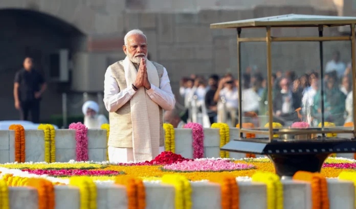 प्रधानमंत्री नरेंद्र मोदी ने गुरुवार को महात्मा गांधी की जयंती पर राजघाट जाकर उन्हें पुष्पांजलि अर्पित की। गांधी जयंती के अवसर पर, प्रधानमंत्री ने कहा कि राष्ट्रपिता के आदर्शों ने मानव इतिहास की दिशा बदल दी। सोशल मीडिया एक्स पर एक पोस्ट में, प्रधानमंत्री ने कहा कि गांधीजी ने दिखाया कि कैसे साहस और सादगी महान परिवर्तन के साधन बन सकते हैं। वे सेवा और करुणा की शक्ति को लोगों को सशक्त बनाने के अनिवार्य साधन मानते थे। उन्होंने आगे कहा, “हम एक विकसित भारत के निर्माण के अपने प्रयास में उनके बताए मार्ग पर चलते रहेंगे।”