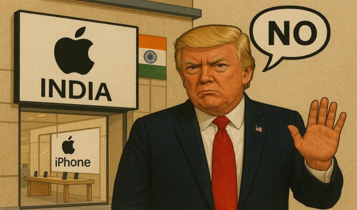 अमेरिकी राष्ट्रपति डोनाल्ड ट्रंप ने धमकी दी कि अगर कंपनी भारत या कहीं और में आईफोन का निर्माण जारी रखती है तो वह एप्पल उत्पादों पर 25 प्रतिशत टैरिफ लगा देंगे। सोशल मीडिया पोस्ट में ट्रंप ने कहा कि प्रौद्योगिकी क्षेत्र की इस दिग्गज कंपनी को वाशिंगटन को 25 प्रतिशत टैरिफ देना होगा। ट्रंप ने ट्रुथ सोशल पर पोस्ट में कहा कि मैंने बहुत पहले ही एप्पल के टिम कुक को सूचित कर दिया था कि मुझे उम्मीद है कि संयुक्त राज्य अमेरिका में बेचे जाने वाले उनके आईफोन का निर्माण और निर्माण संयुक्त राज्य अमेरिका में होगा, न कि भारत या किसी अन्य स्थान पर। अगर ऐसा नहीं है, तो एप्पल को अमेरिका को कम से कम 25% टैरिफ देना होगा।