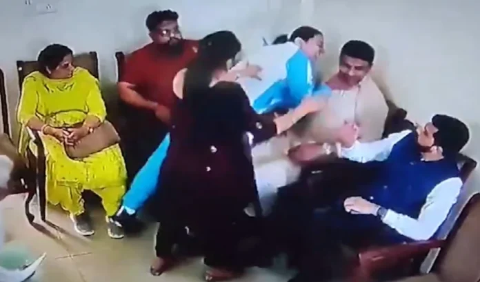 बॉक्सर स्वीटी बूरा और उनके पति और बीजेपी नेता दीपक हुड्डा इन दिनों काफी चर्चा में हैं। दोनों के बीच आरोप प्रत्यारोप जारी है, वहीं अब इन दोनों का एक वीडियो वायरल हो रहा है। घटना हरियाणा में हिसार स्थित महिला थाने का बताई जा रही है। वीडियो में देखा जा सकता है कि थाने में पहले दोनों के बीच बहस होती है फिर अचानक स्वीटी अपनी कुर्सी से उठ जाती है और दीपक का गला दबाने लगती है। आस-पास खड़े परिजन बीच-बचाव करते हैं।