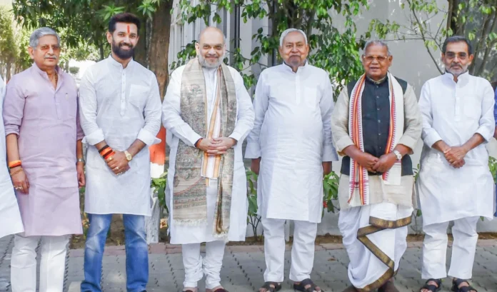 केंद्रीय गृह मंत्री अमित शाह और भारतीय जनता पार्टी (भाजपा) के अध्यक्ष जेपी नड्डा जनता दल (यूनाइटेड) के प्रमुख नीतीश कुमार के रिकॉर्ड 10वीं बार मुख्यमंत्री पद की शपथ लेने से पहले बुधवार रात पटना पहुंचे।
